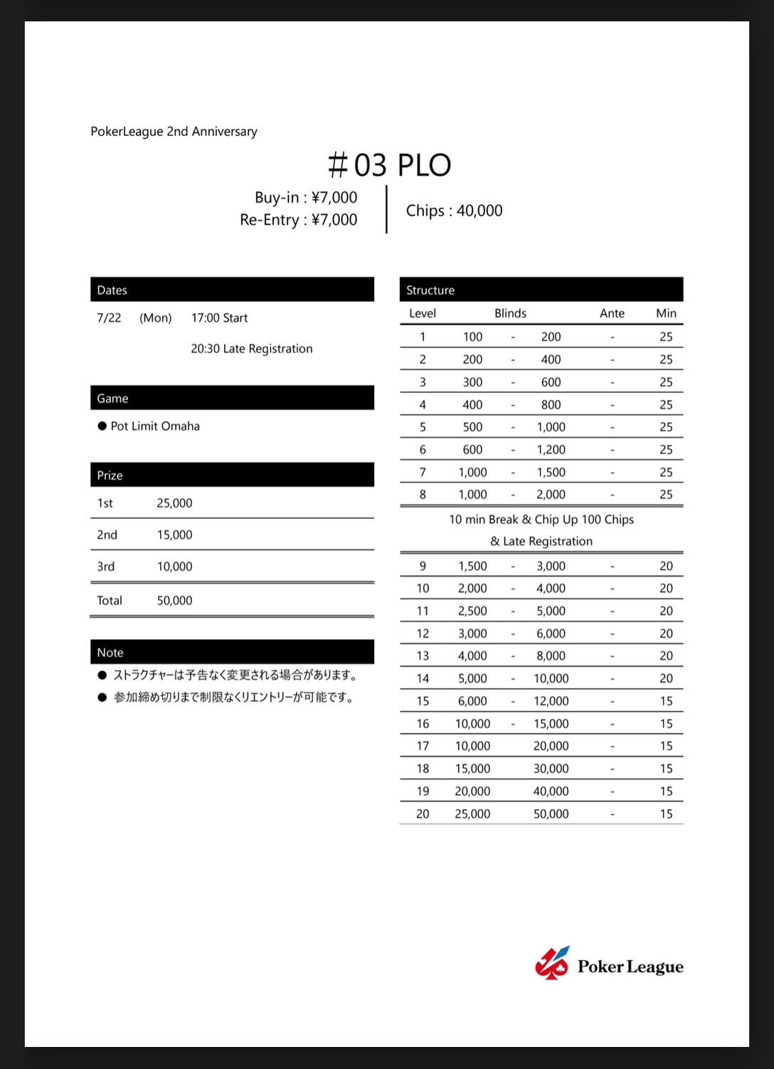 PokerLeague 2nd Anniversary 【#03 PLO】