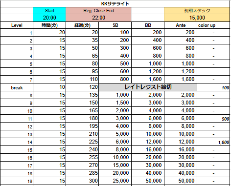 - レイトレジスト →22:00予定(タイマースタートより120分)