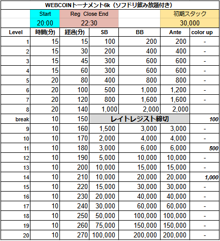 【タクシー割有り〼】 WEBCOINトーナメント6k(飛ぶまでソフドリ飲み放題付き)