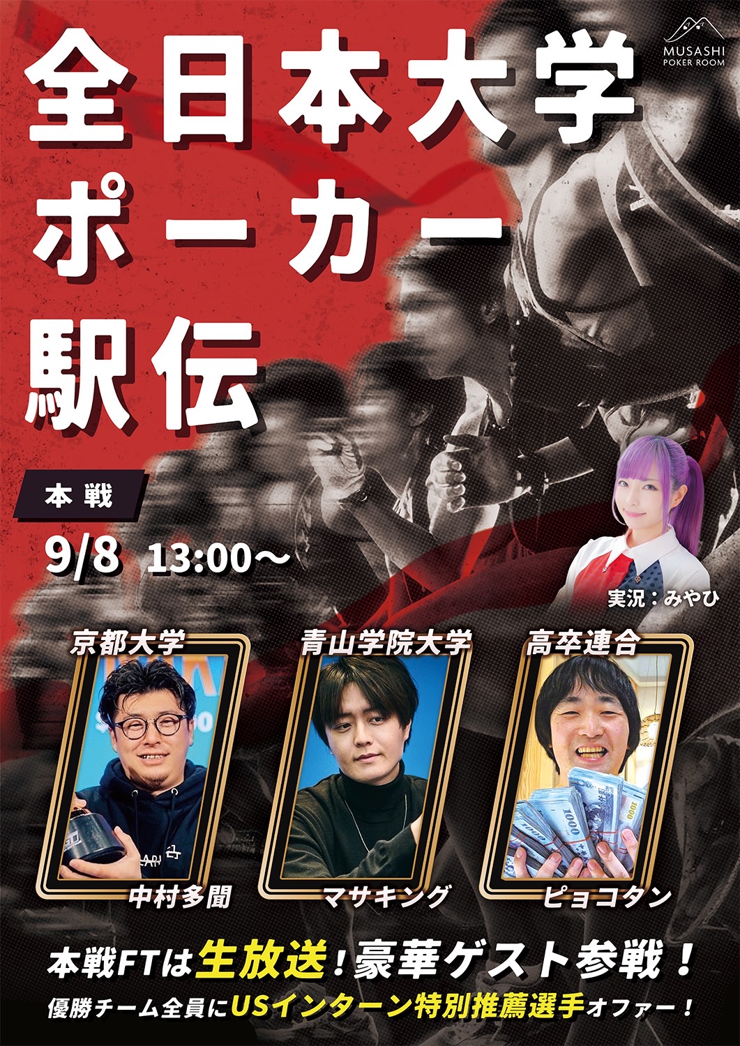 ポーカー日本一の大学を決定する【出身大学別ポーカー団体戦】です。
