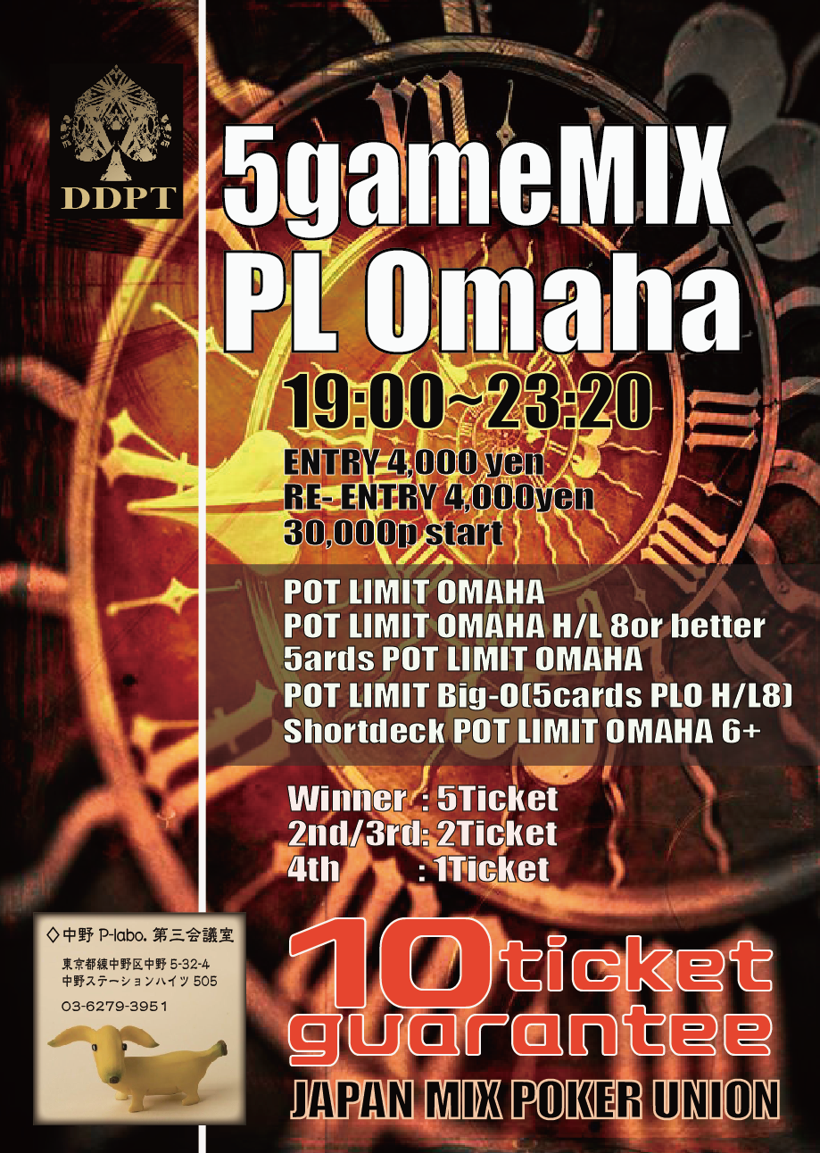 | ゲーム | 30,000点 / ポットリミット / オマハ / normal / Ticket |