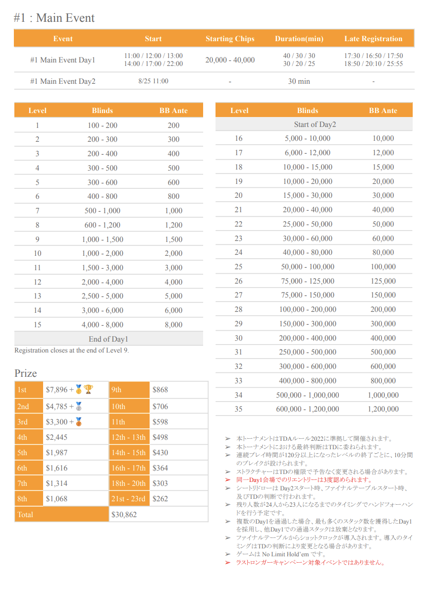 | 12/15(月) | 18:00 | 【JOPT 15Ticket】メガサテライト | Casino Live Tokyo |