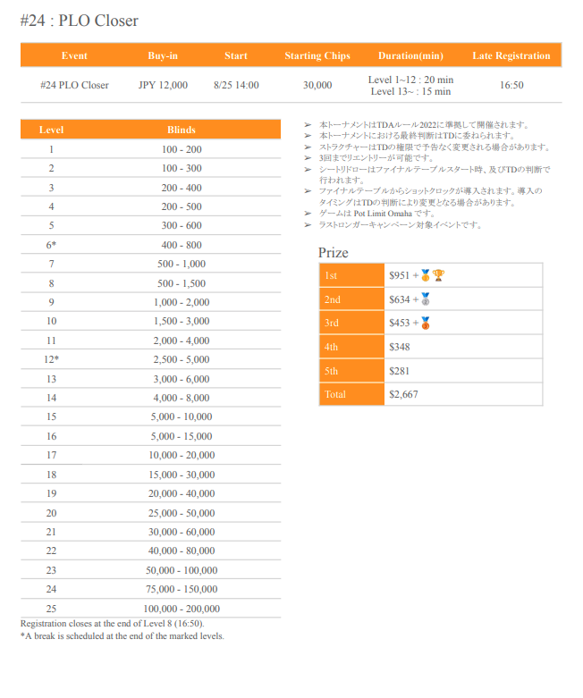 | 公式ページ | https://pokerjapan.jp/wp-content/uploads/2024/07/SPADIE-34th-Players-Guide.pdf |