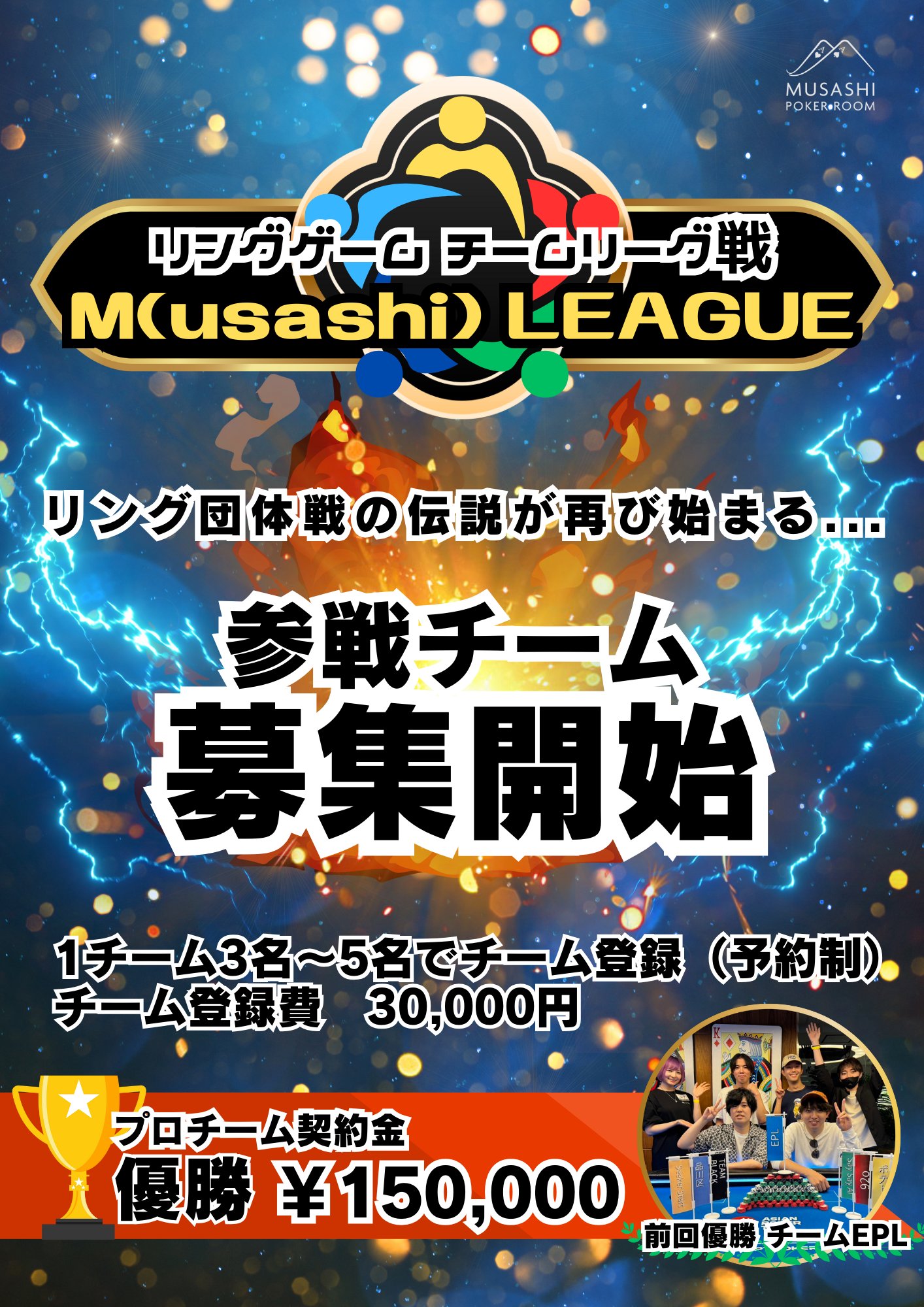 2周年を迎えたMUSASHI POKER ROOMが贈る、最高峰のポーカーイベント「M LEAGUE」。再び蘇るこの伝説に、あなたのチームはどう挑むのか?