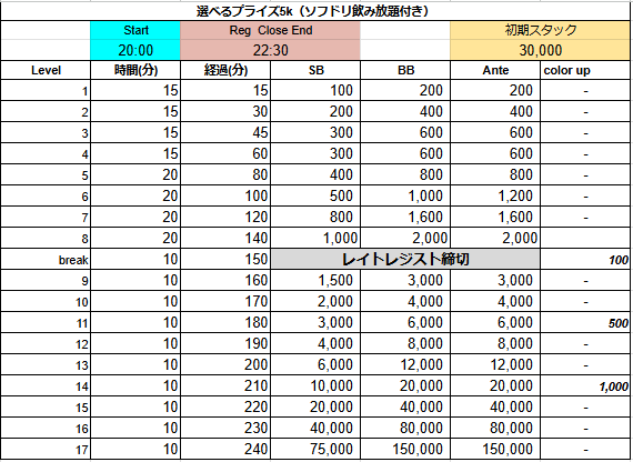 | ゲーム | 30,000点 / ノーリミット / テキサスホールデム / normal / Ticket |