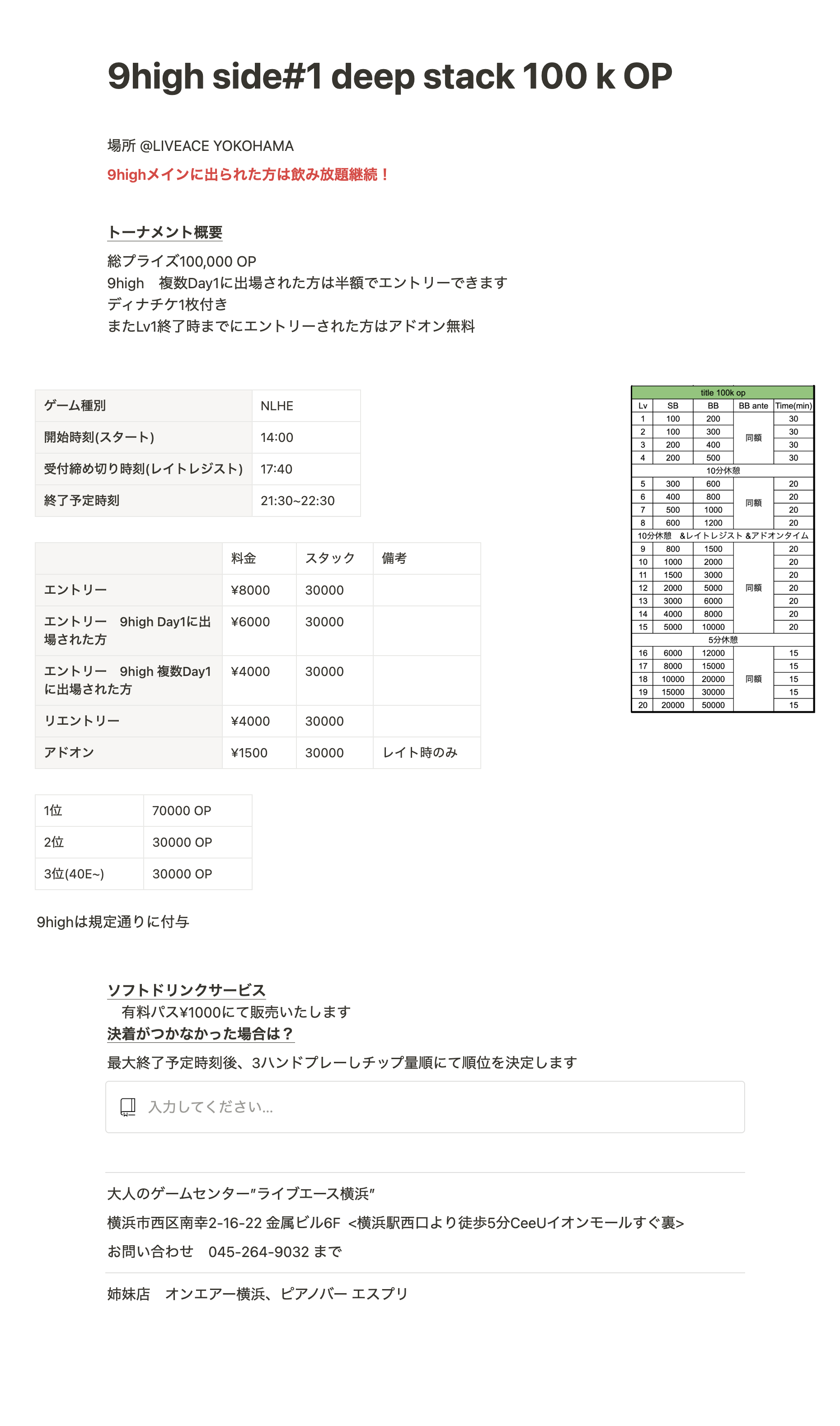総プライズ100k OP保証9high side#1 DEEPSTACK レイト17:40