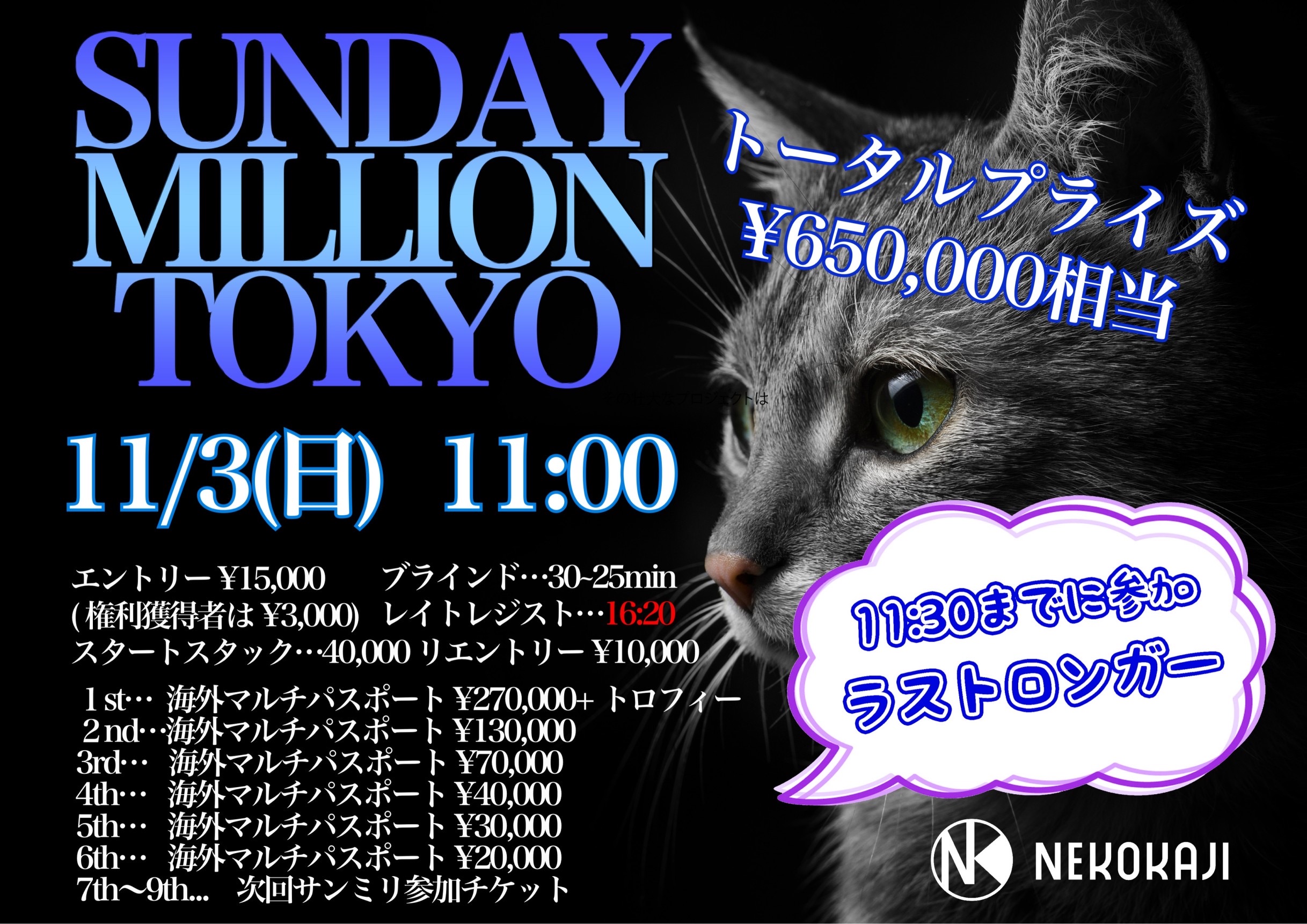 1R終了時までに(11:30)着席された方の中で、最後まで残ったプレイヤー上位5名の方には、ラストロンガー限定の抽選が受けられます。抽選では、サンミリチケットや店内で使えるマルチチケットなどが当たります!!