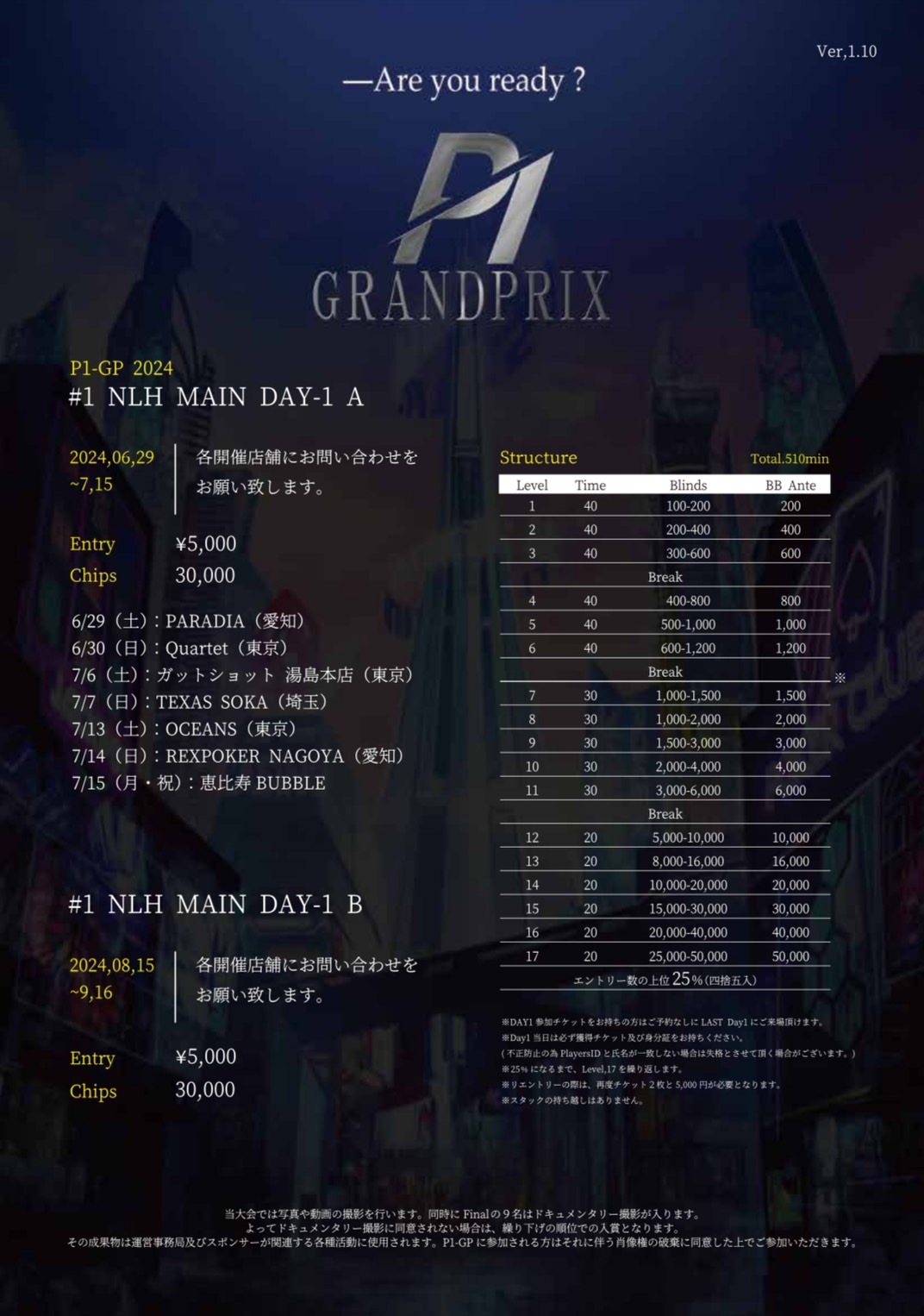 | 12/15(月) | 18:00 | 【JOPT 15Ticket】メガサテライト | Casino Live Tokyo |