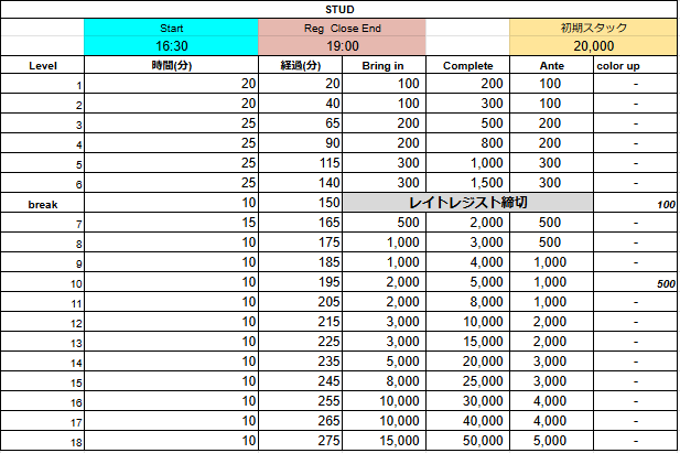 - 終了想定時間→20:00