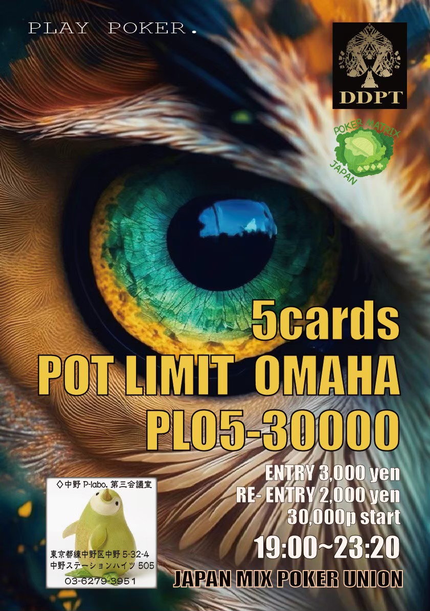 | 12/15(月) | 16:00 | 【JOPT】1000円で参加できる1卓限定 サテライト | EGP EBISU |