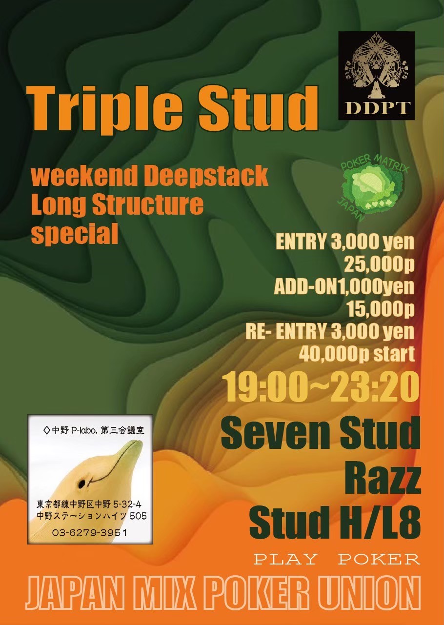 | 12/15(月) | 16:00 | 【JOPT】1000円で参加できる1卓限定 サテライト | EGP EBISU |
