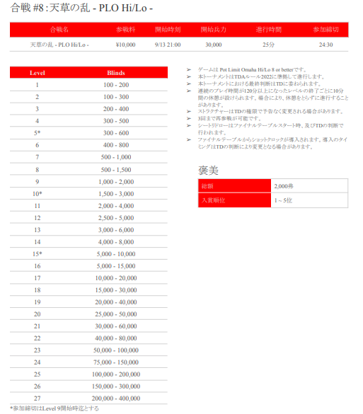 ←戦国ポーカーツアー-秋の陣- 大決戦概要(Player’s Guide)はこちら!