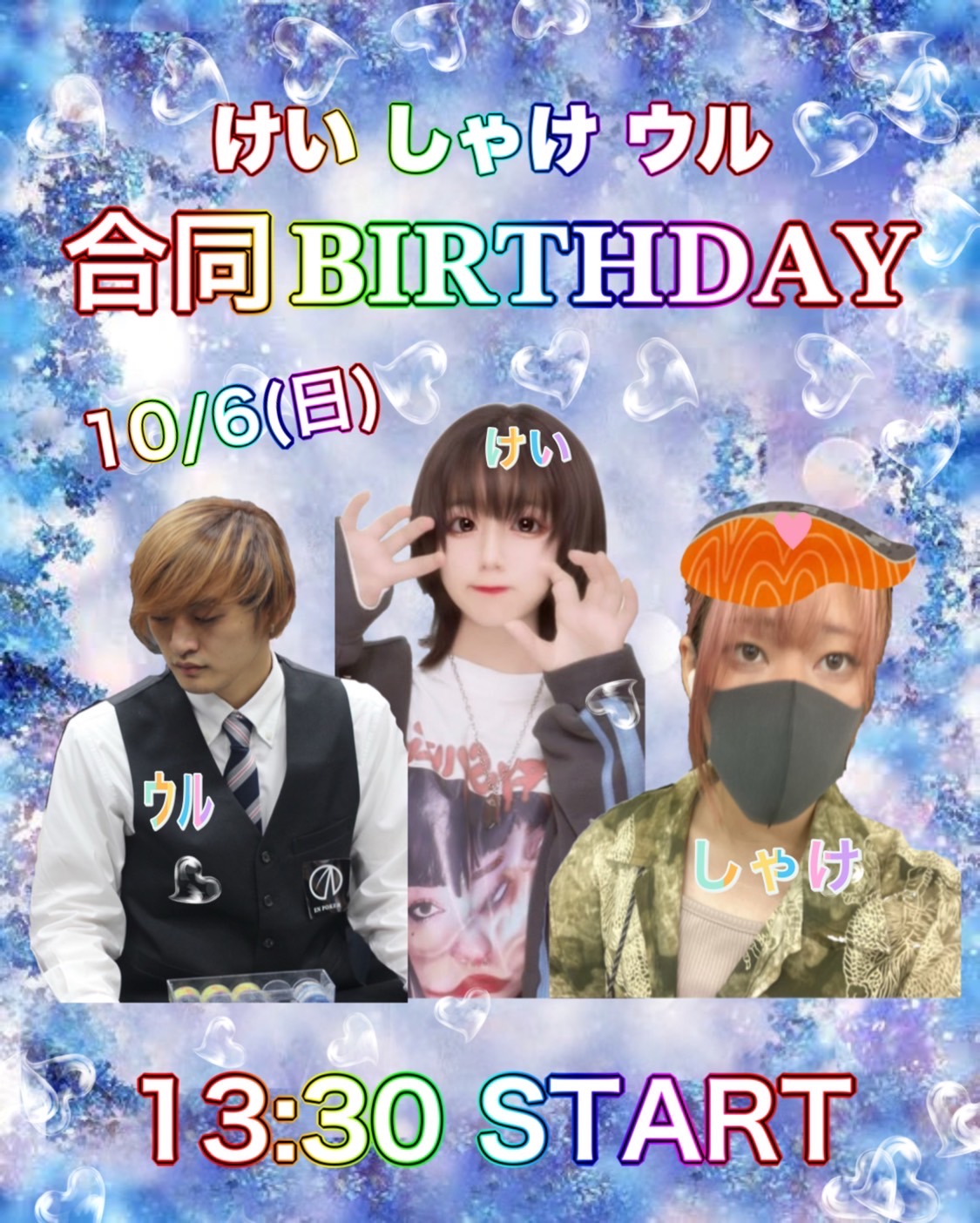 けいちゃんしゃけちゃんうるくんの合同BIRTHDAYイベント開催!