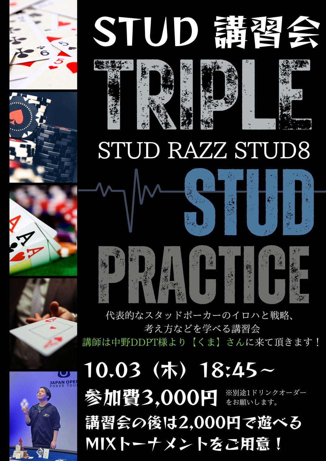 10Gameや、HORSE、BEASTといったMIXゲームのキモとなるStud3種[7card,Stud,Razz,Stud8]を基礎戦略から学べる講習会です!