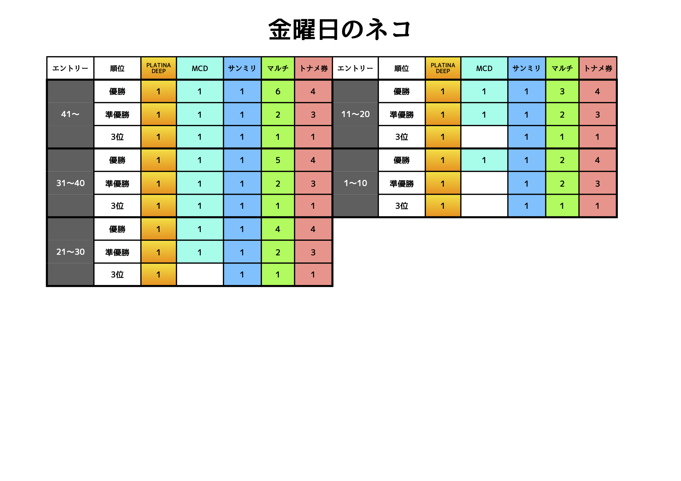 ♡にゃんパス・・・獲得翌日より1週間トーナメント参加費・1回目のリエントリーに2,000円割引としてご利用いただけます