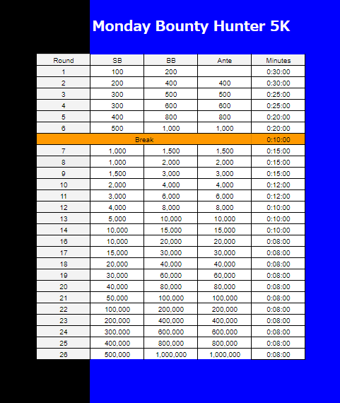 Monday Bounty Hunter 5K 月曜夜のデイリー・トーナメント