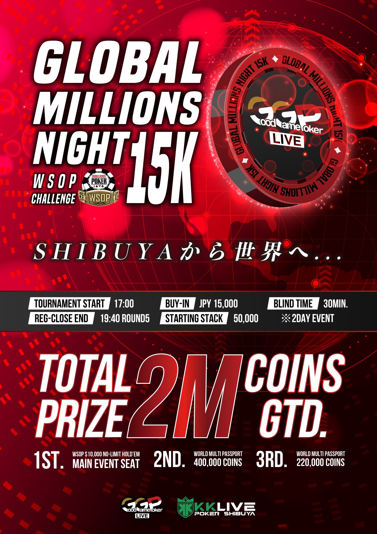 | 12/16(火) | 17:45 | 【JOPT 15チケット】メガサテライト | GoodGame Poker Live Shinjuku |
