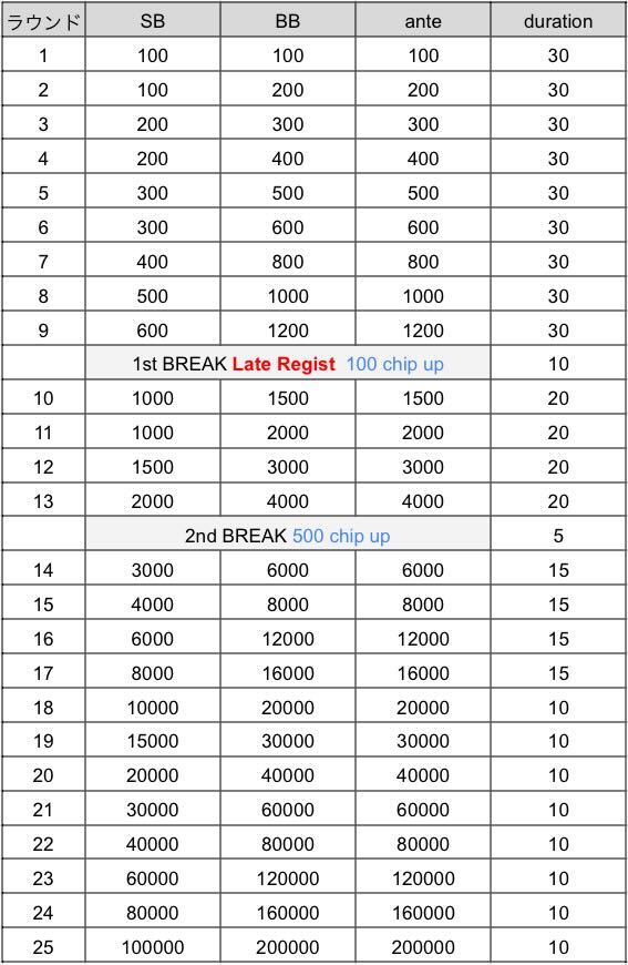 ※TD権限によりタイマースタート、ブラインド、ストラクチャーの変更となる場合がございます。