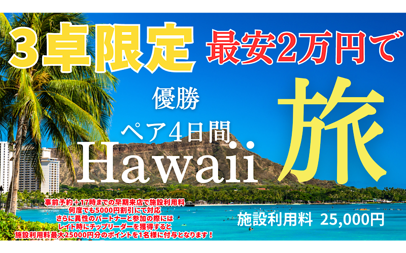 きくちゃんプレゼンツ【3卓限定】最安2万円でHawaiiペア4日間の旅