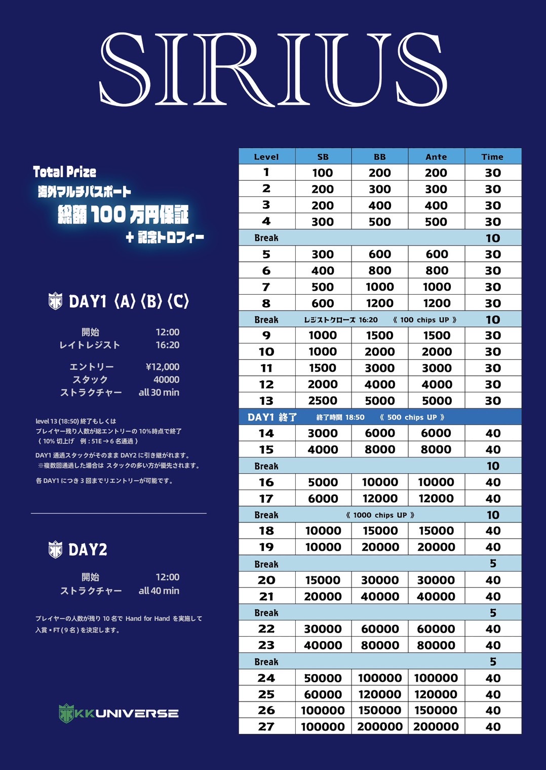 | 12/15(月) | 18:00 | 【JOPT 15Ticket】メガサテライト | Casino Live Tokyo |