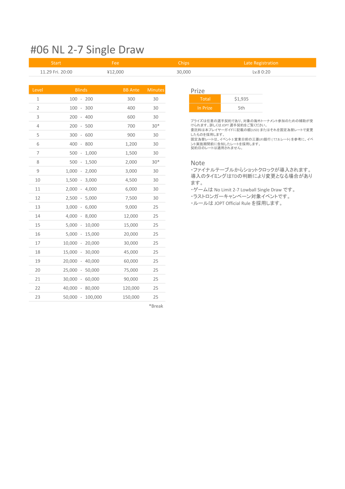 | 店舗名 | JAPAN OPEN POKER TOUR |