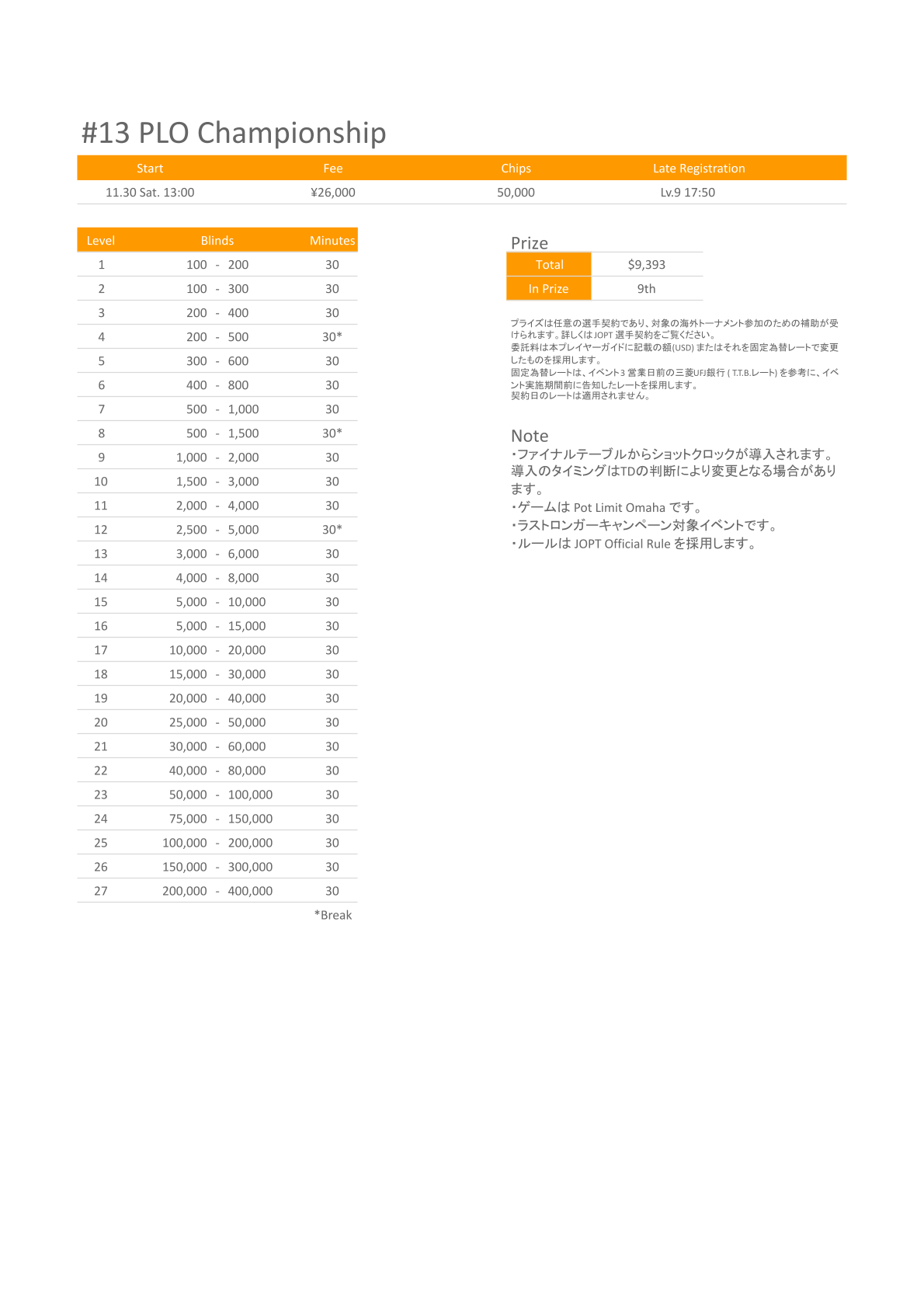 | 店舗名 | JAPAN OPEN POKER TOUR |