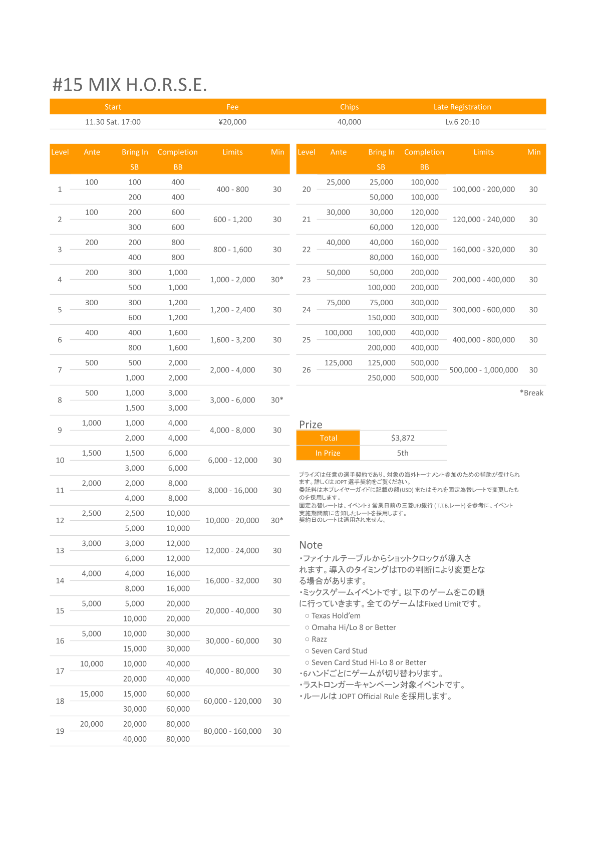 | 店舗名 | JAPAN OPEN POKER TOUR |