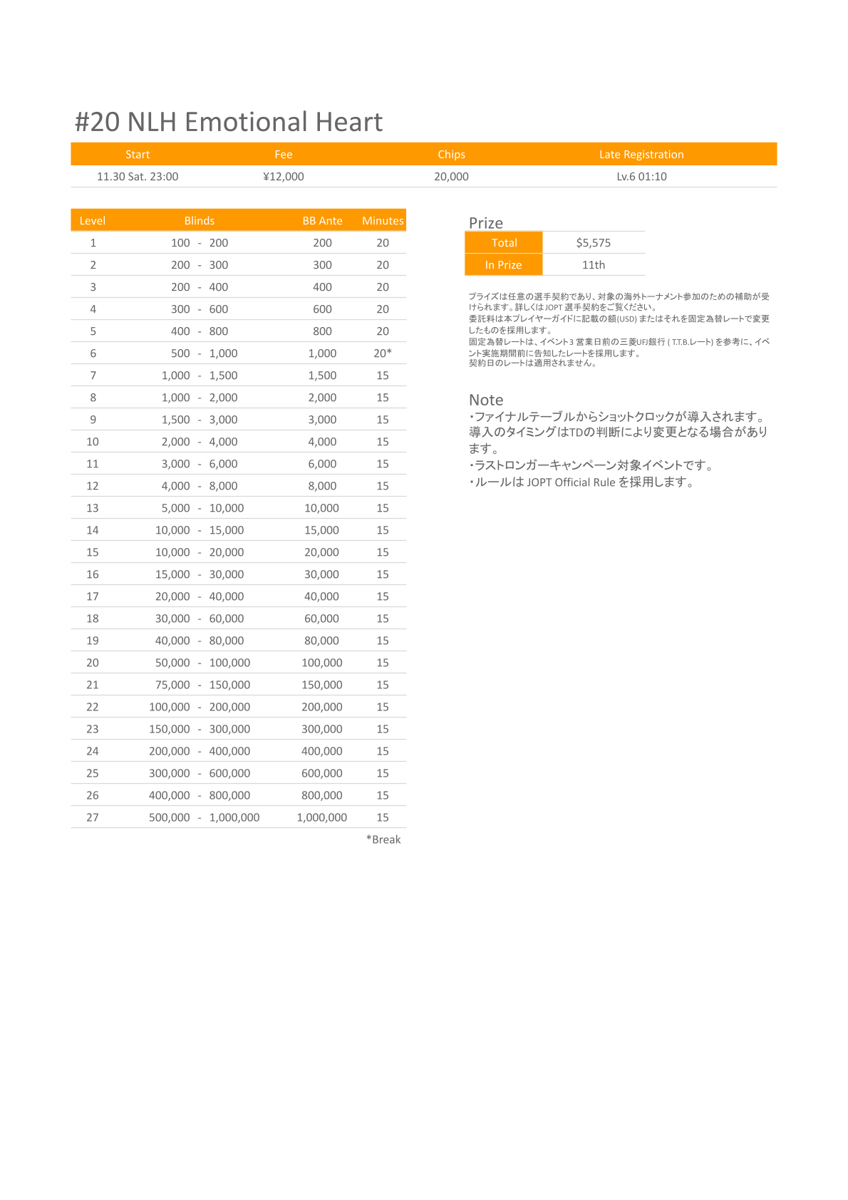 | 店舗名 | JAPAN OPEN POKER TOUR |