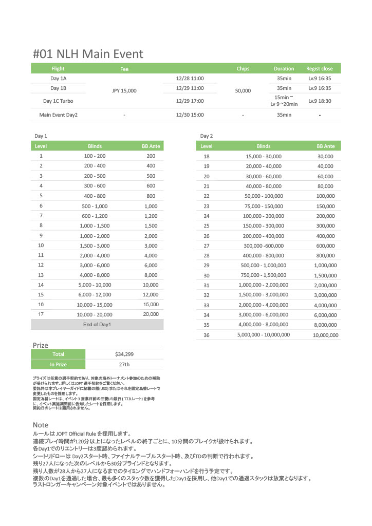 | 12/15(月) | 18:00 | 【JOPT 15Ticket】メガサテライト | Casino Live Tokyo |