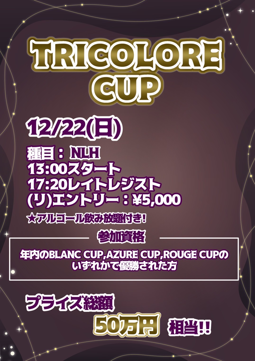 | 12/15(月) | 16:00 | 【JOPT】1000円で参加できる1卓限定 サテライト | EGP EBISU |