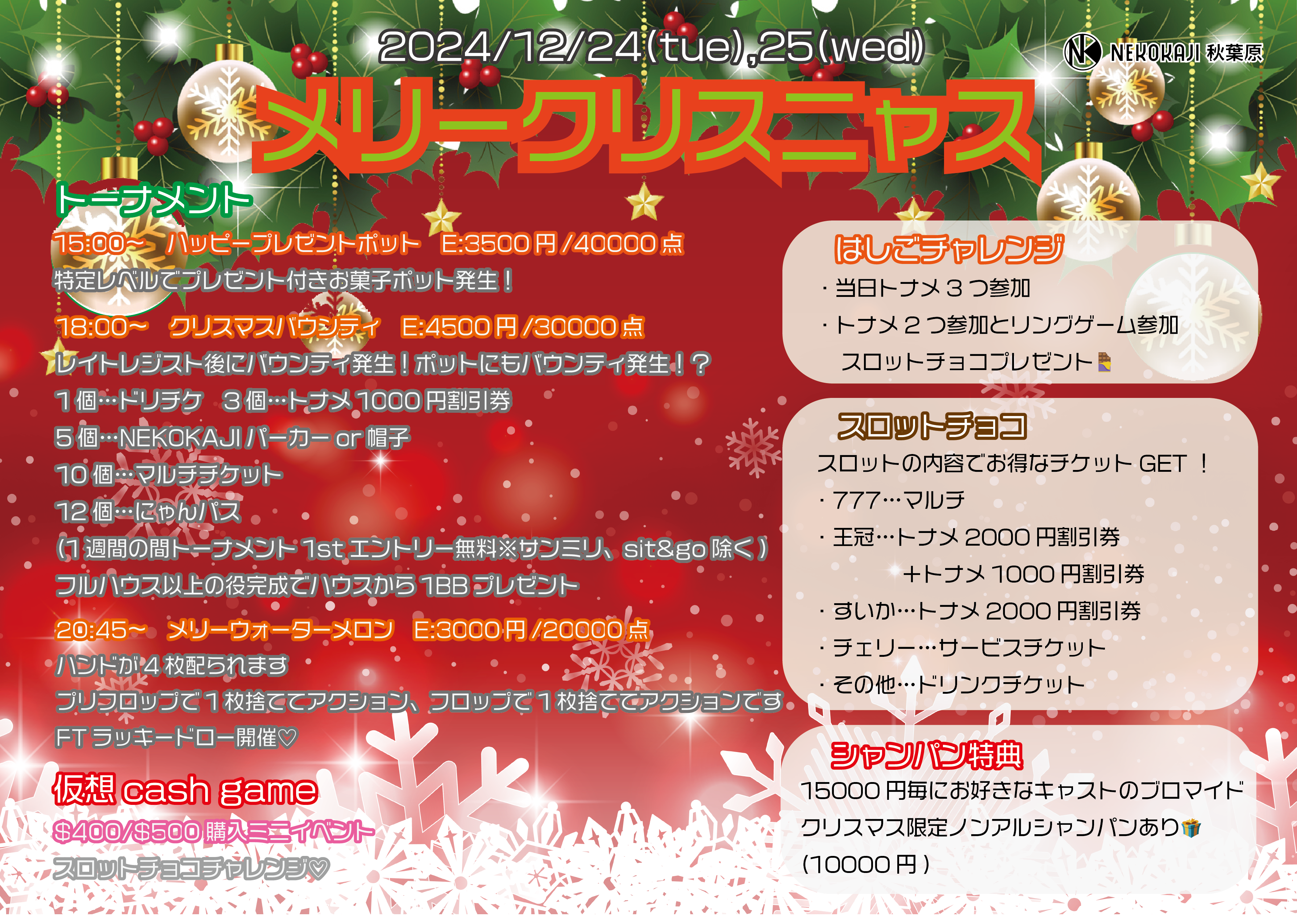 | 12/16(火) | 15:30 | 【♠︎SPADIE】Daily NLH 2K | 秋葉原カジノクエスト |