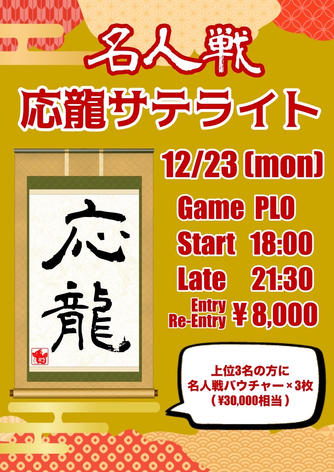 上位3名【名人戦バウチャーチケット3枚】or【25,000PP or webcoin】