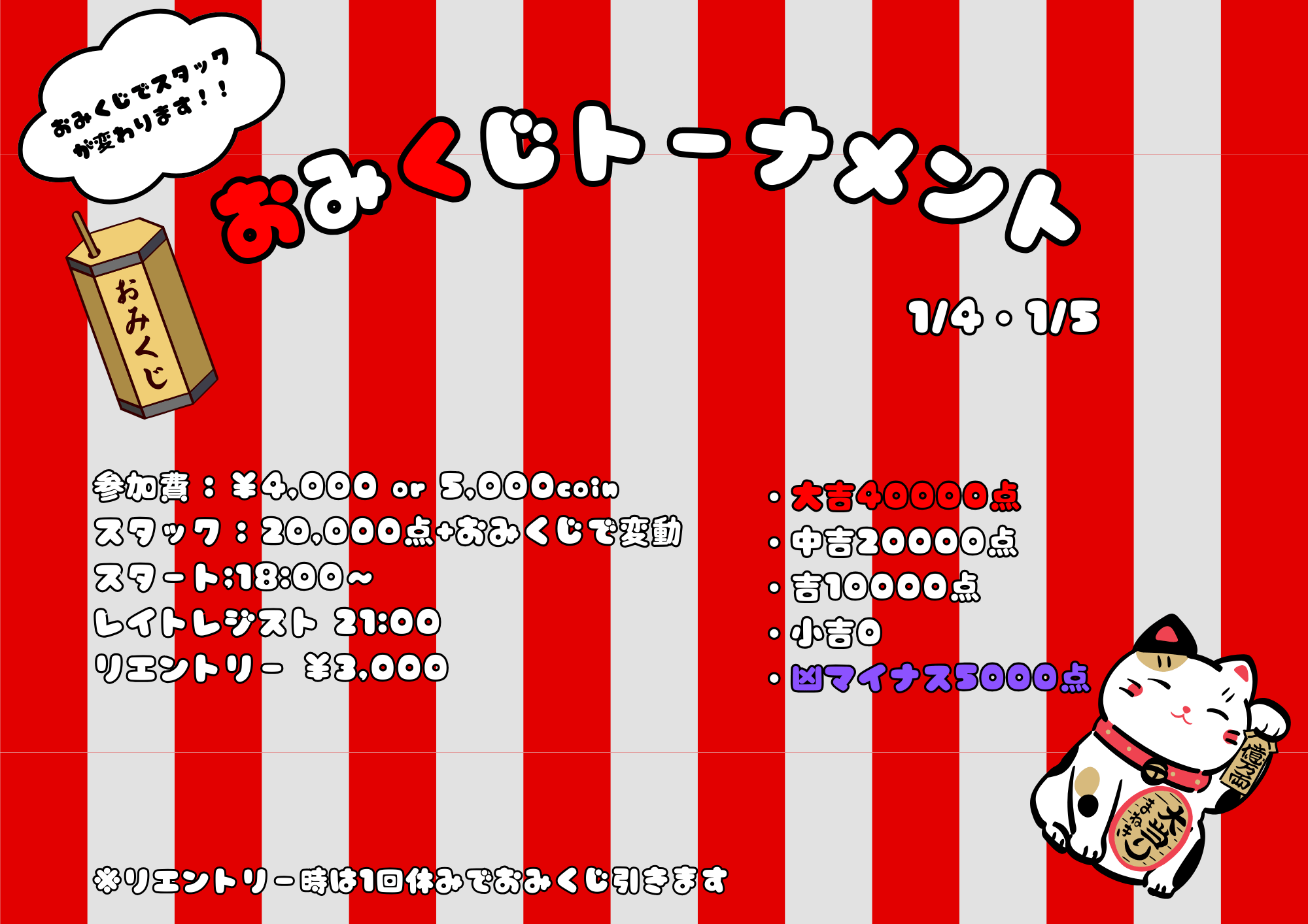 | 12/15(月) | 16:00 | 【JOPT】1000円で参加できる1卓限定 サテライト | EGP EBISU |