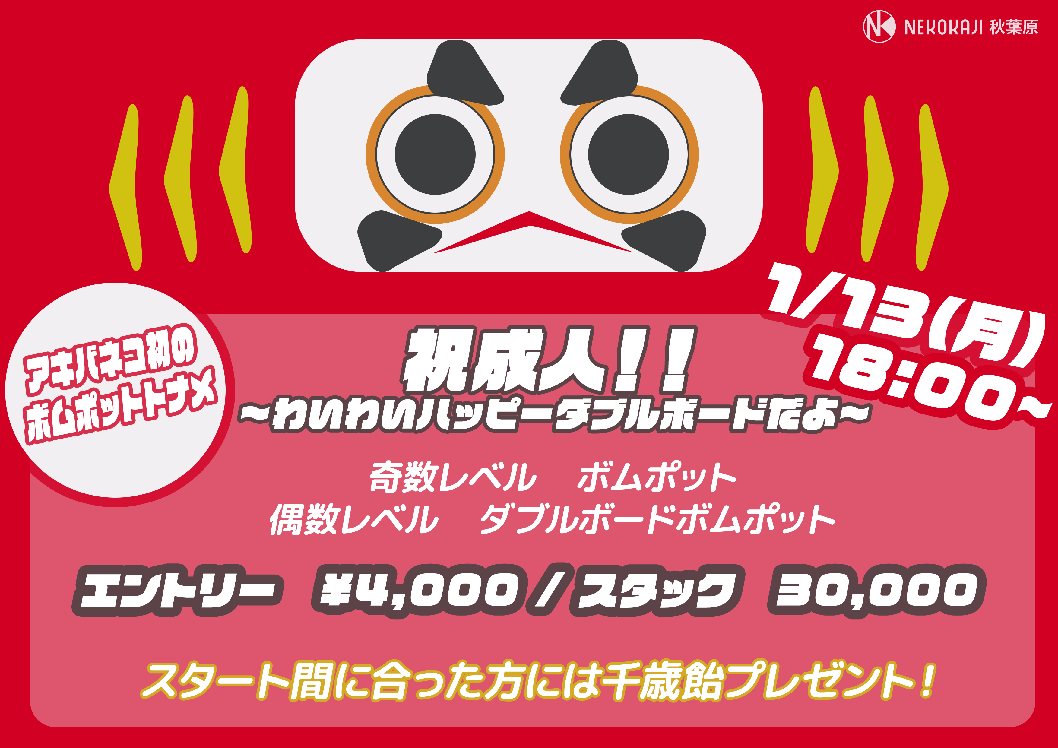 | 12/15(月) | 16:00 | 【JOPT】1000円で参加できる1卓限定 サテライト | EGP EBISU |