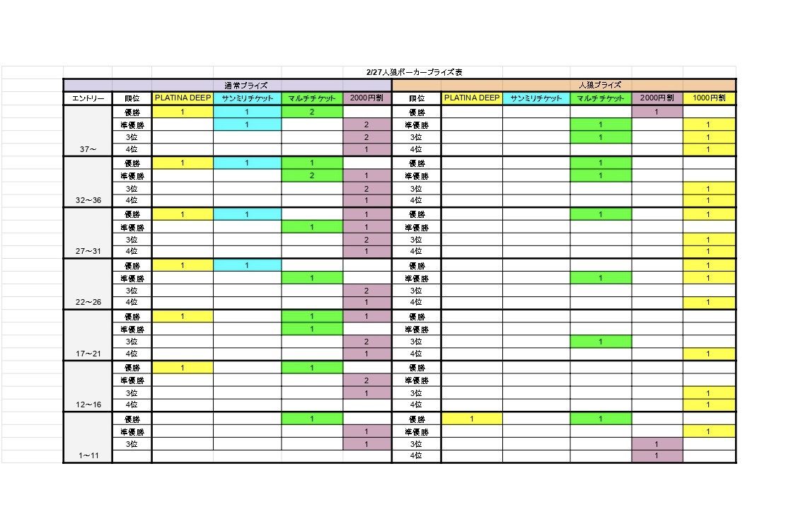 | ゲーム | 20,000点 / ノーリミット / テキサスホールデム / 15Min. / ポイントなし |