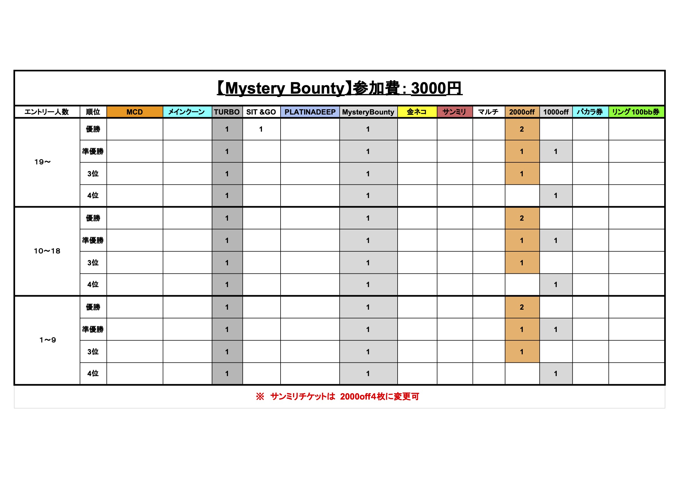 | ゲーム | 30,000点 / ノーリミット / テキサスホールデム / 20min / Ticket |