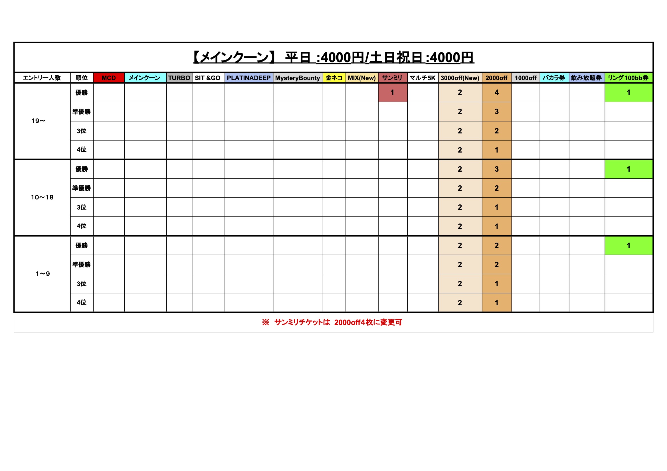 ♡3000円off/2000円off/1000円offクーポン・・・トーナメント/リングゲーム3000円/の2000円/1000円割引としてご利用いただけます(sit&goは使用不可)