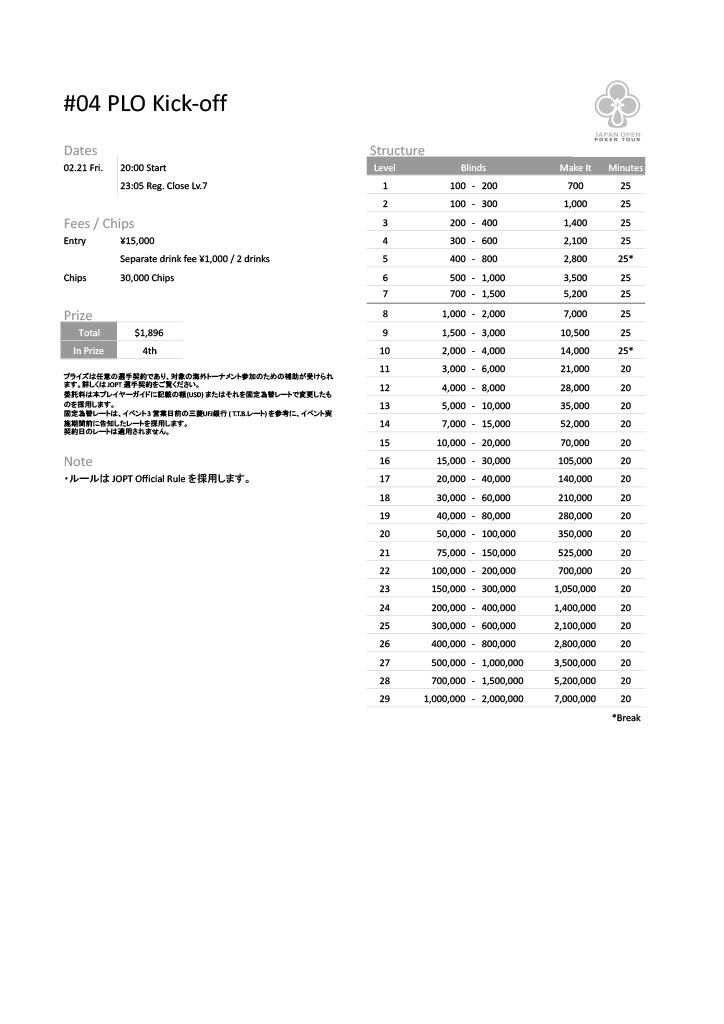 | 公式ページ | https://japanopenpoker.com/sapporo/ |