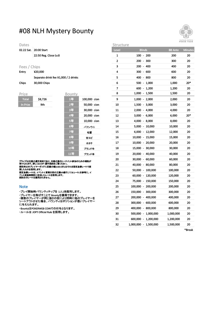 | 公式ページ | https://japanopenpoker.com/sapporo/ |