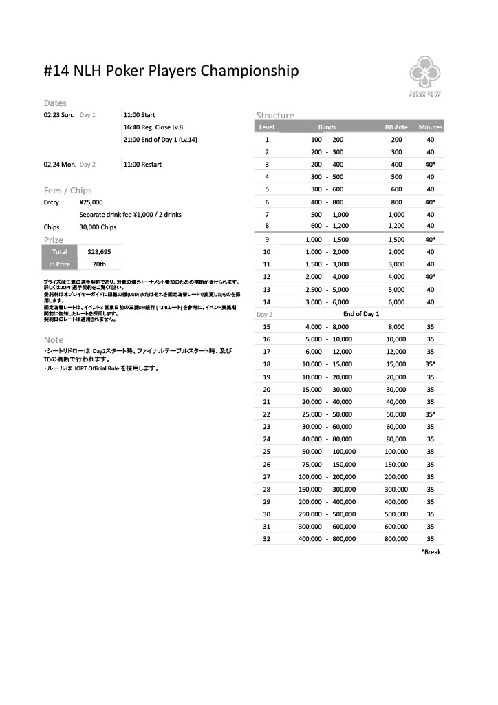| 公式ページ | https://japanopenpoker.com/sapporo/ |