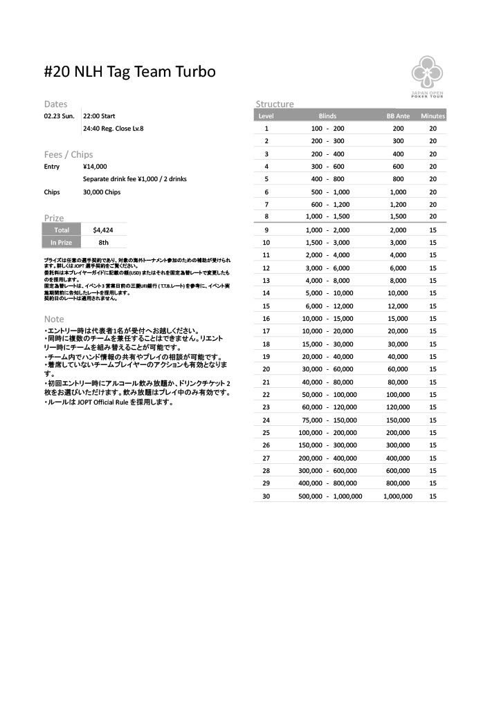 | 公式ページ | https://japanopenpoker.com/sapporo/ |