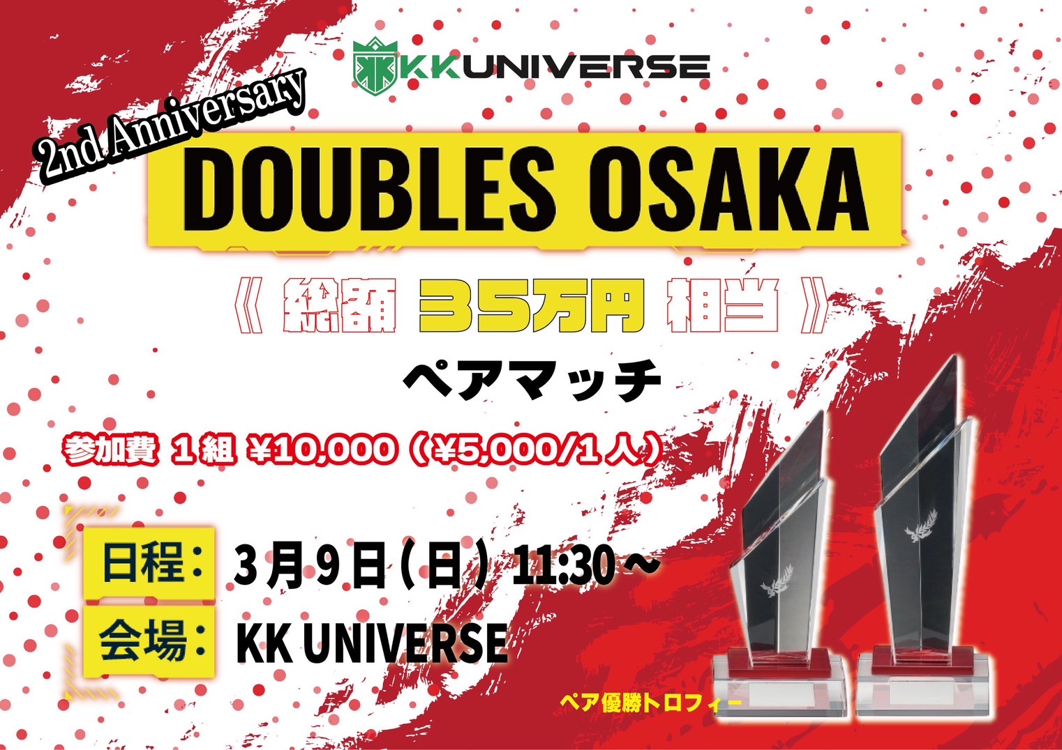 海外スポンサード 40,000円 + UNIPASS×6 + prize match voucher×2 +ペアトロフィー贈呈