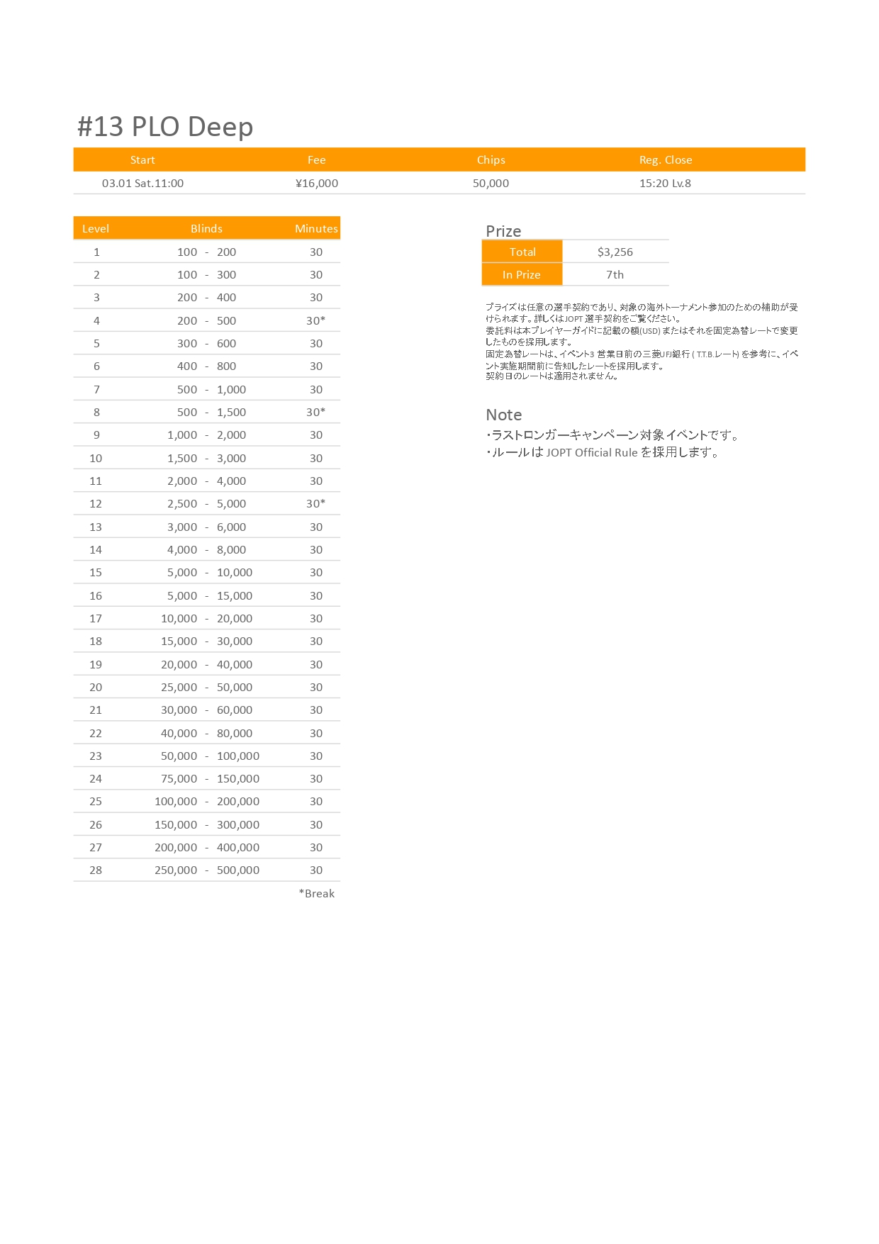 | 店舗名 | JAPAN OPEN POKER TOUR |