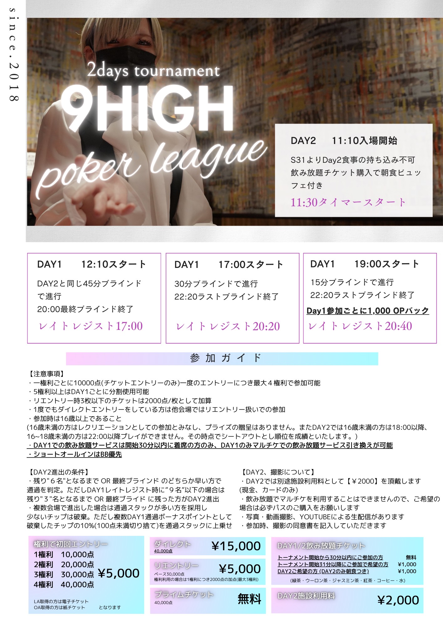 9high season31【DAY2】入場開始11:00 トーナメントスタート11:30