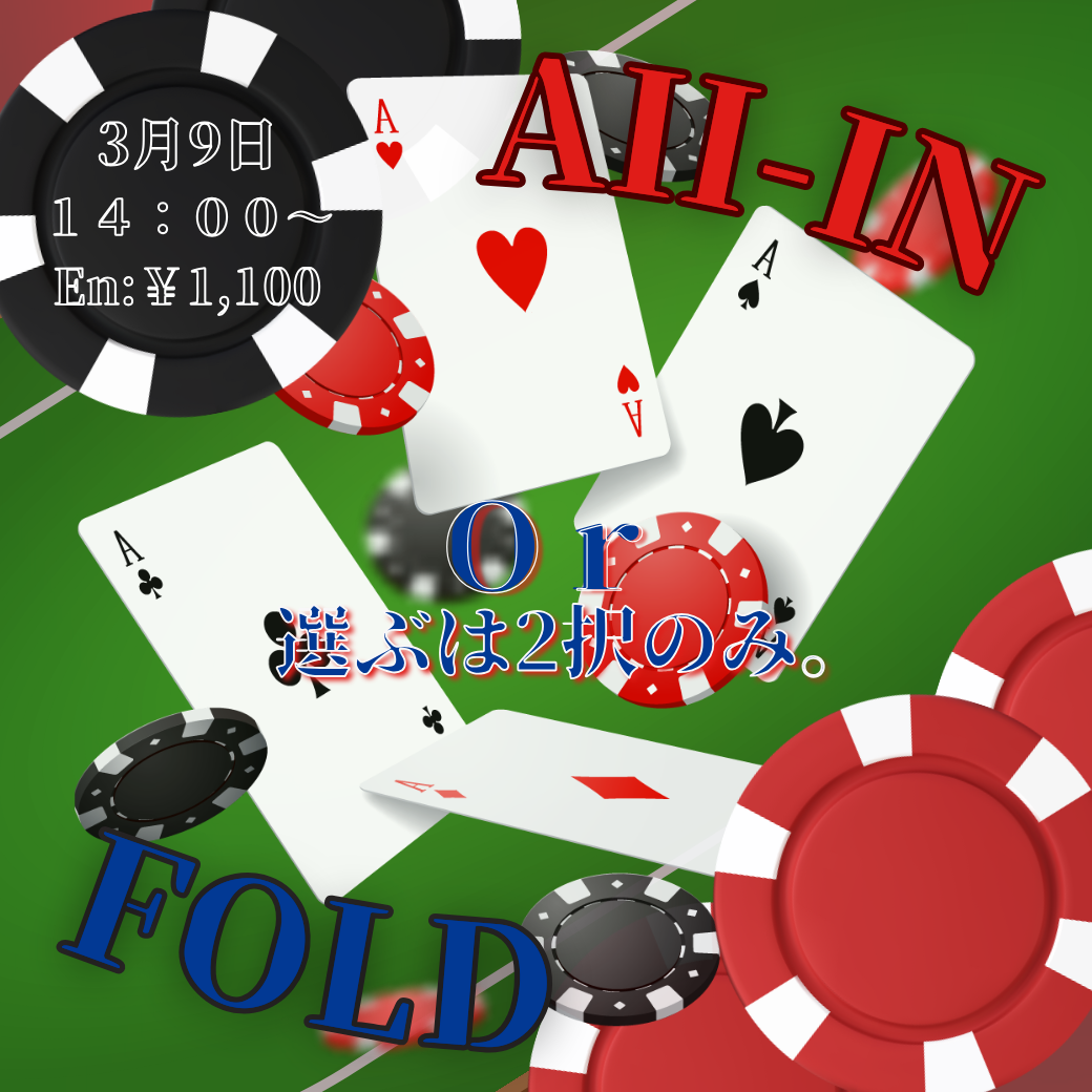 選べるのはAll-in or fold の二択のみ!! 8maxでトーナメントを行います!