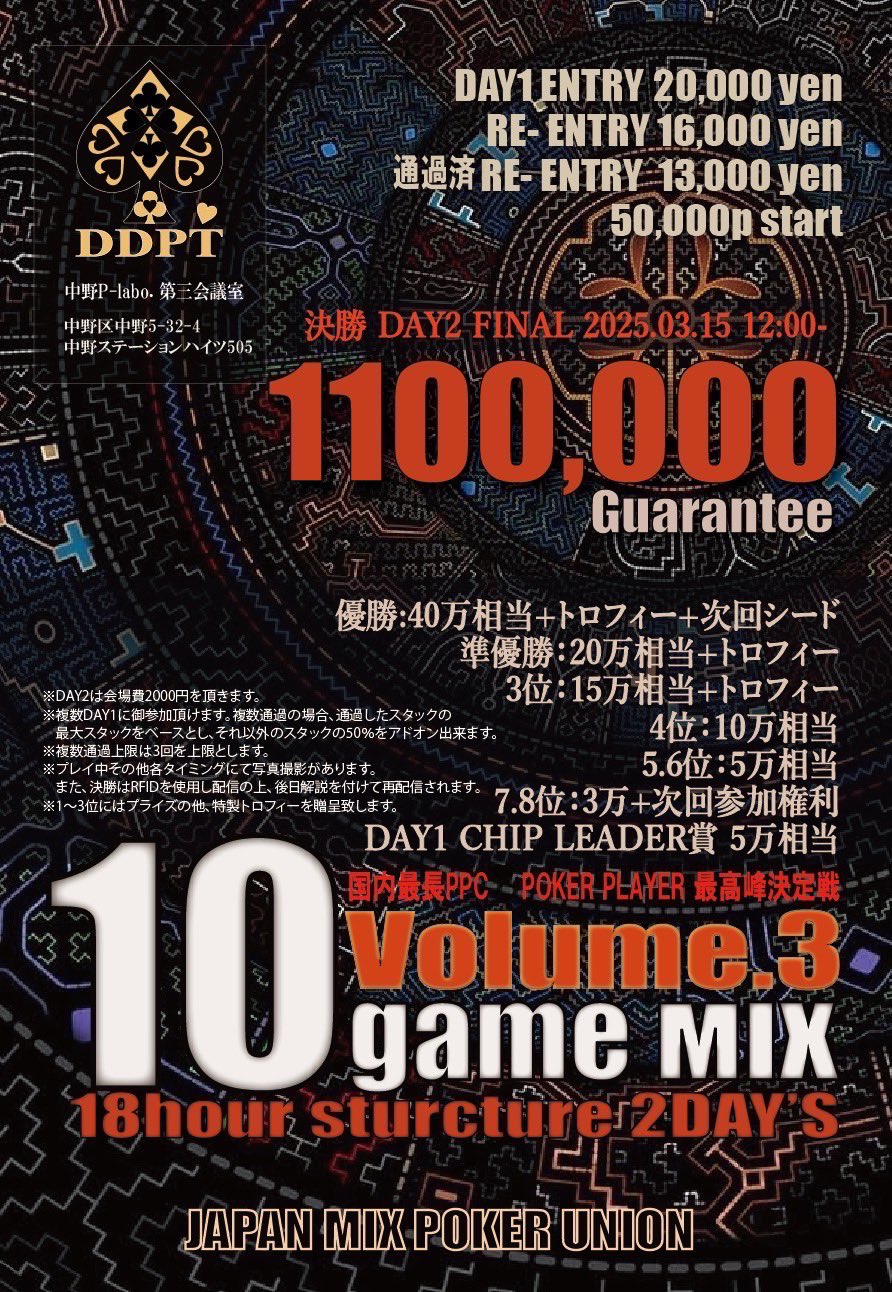 中野DDPTの10GAME MIX Volume.3を3/5(水)15:00〜NEKOKAJI新宿でも開催致します!