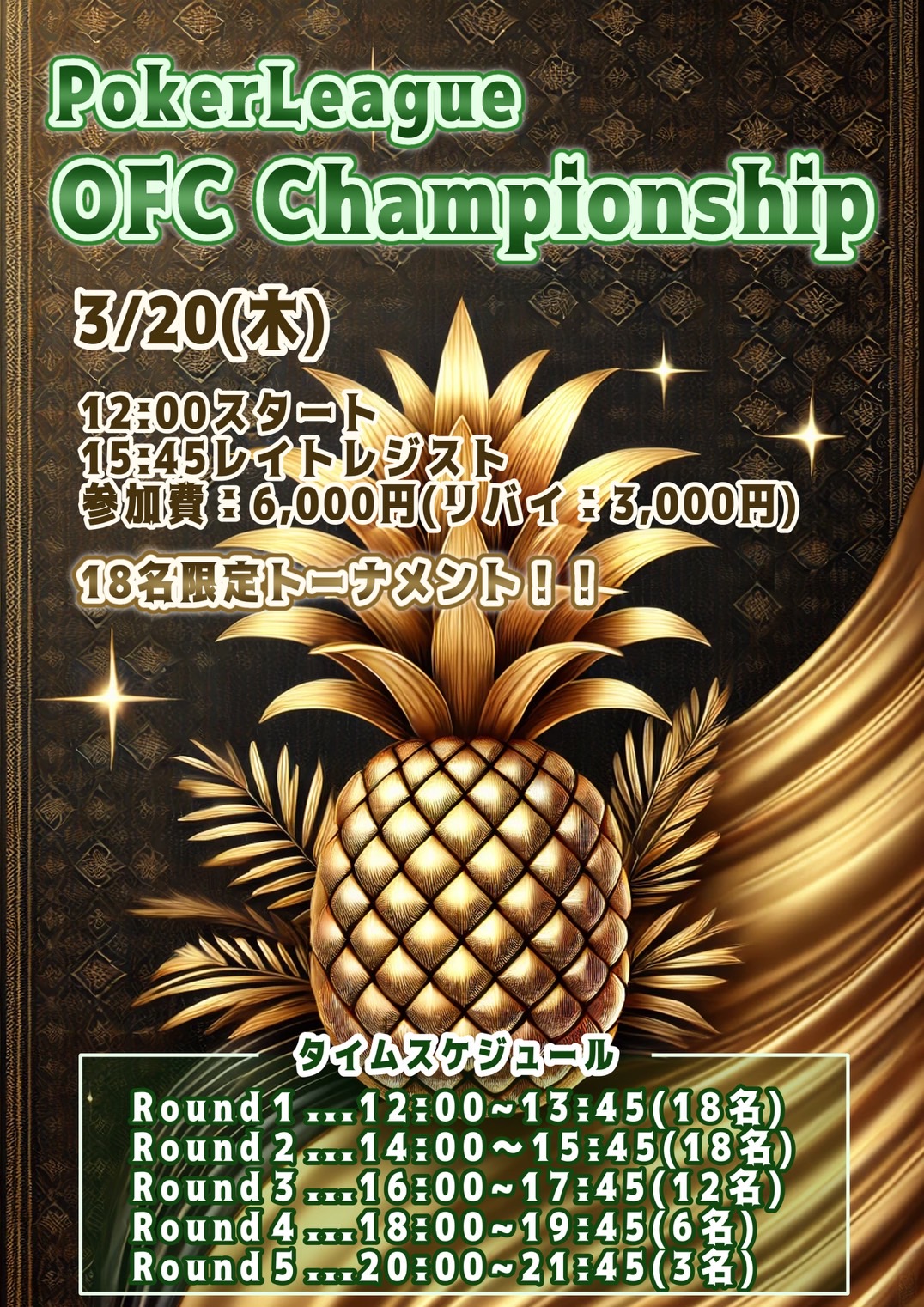 | 12/15(月) | 18:00 | 【JOPT 15Ticket】メガサテライト | Casino Live Tokyo |