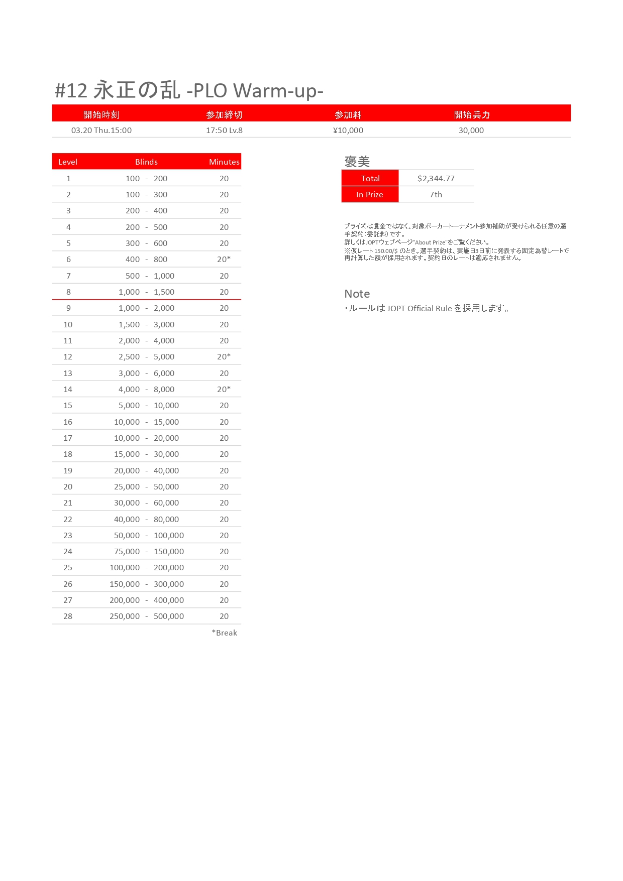 | ゲーム | 30,000点 / ポットリミット / オマハ / normal / Others |