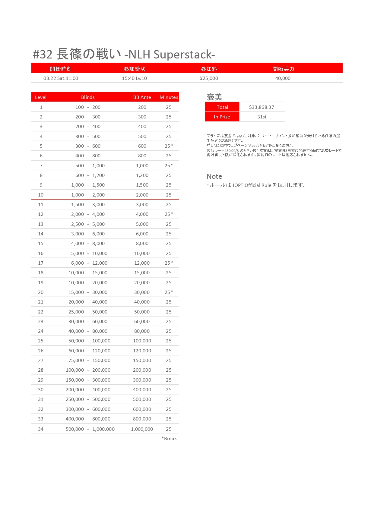 | 店舗名 | JAPAN OPEN POKER TOUR |