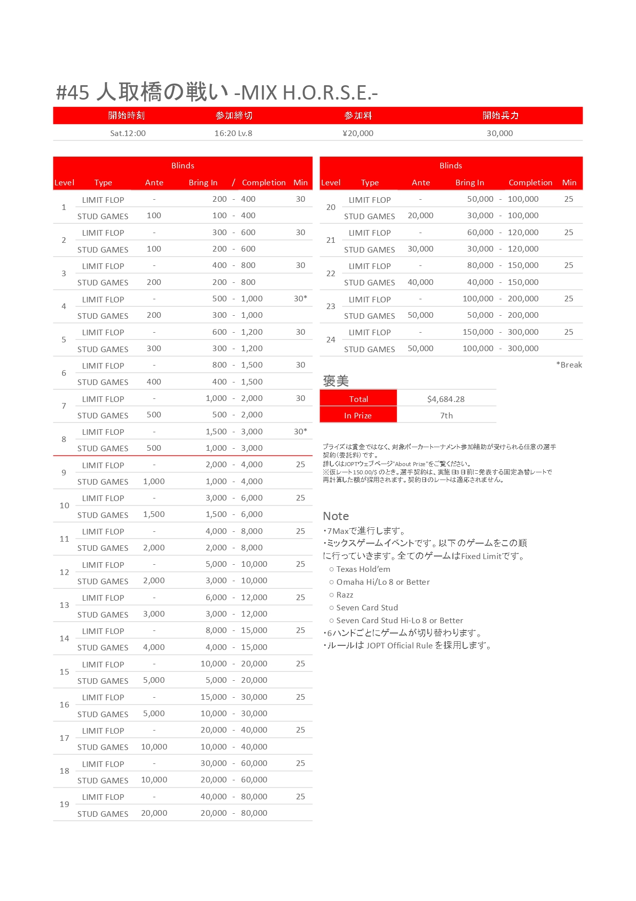 | ゲーム | 30,000点 / ミックス / H.O.R.S.E. / normal / Others |
